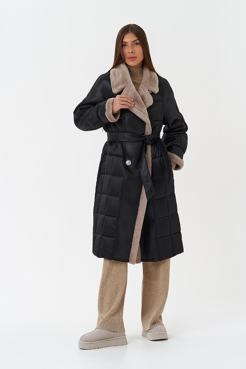 Крой воротника - отложной, отделка эко мех