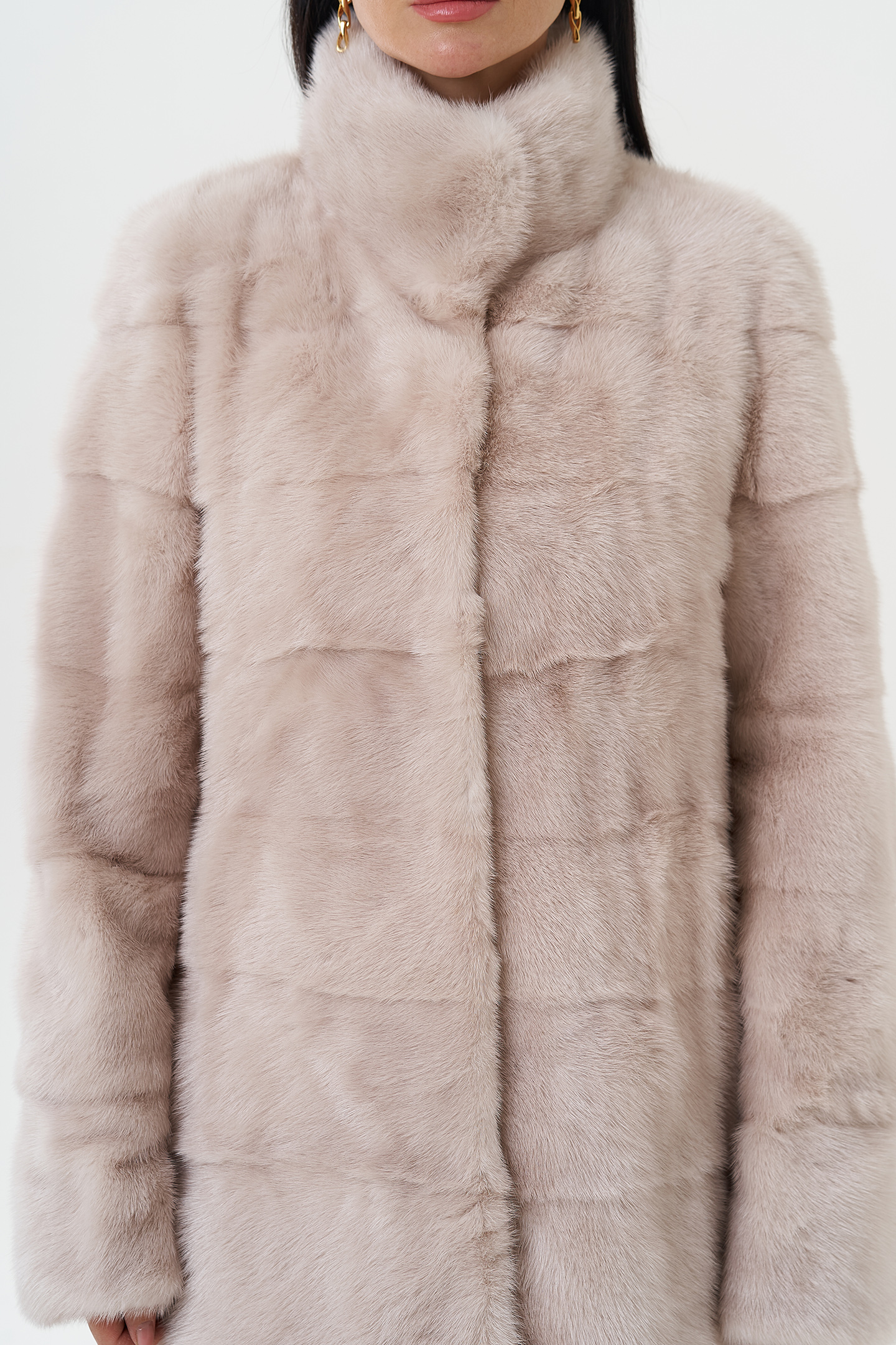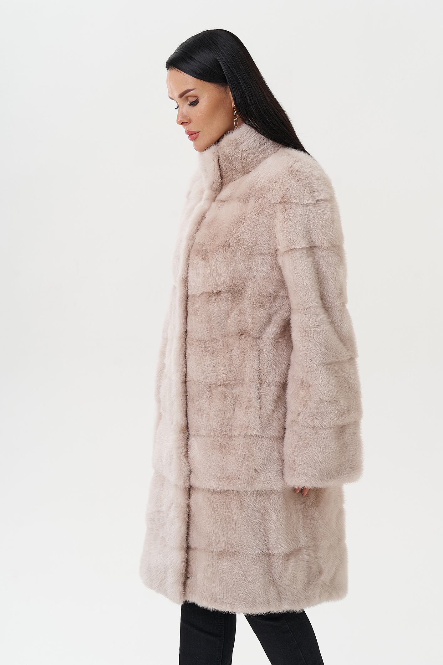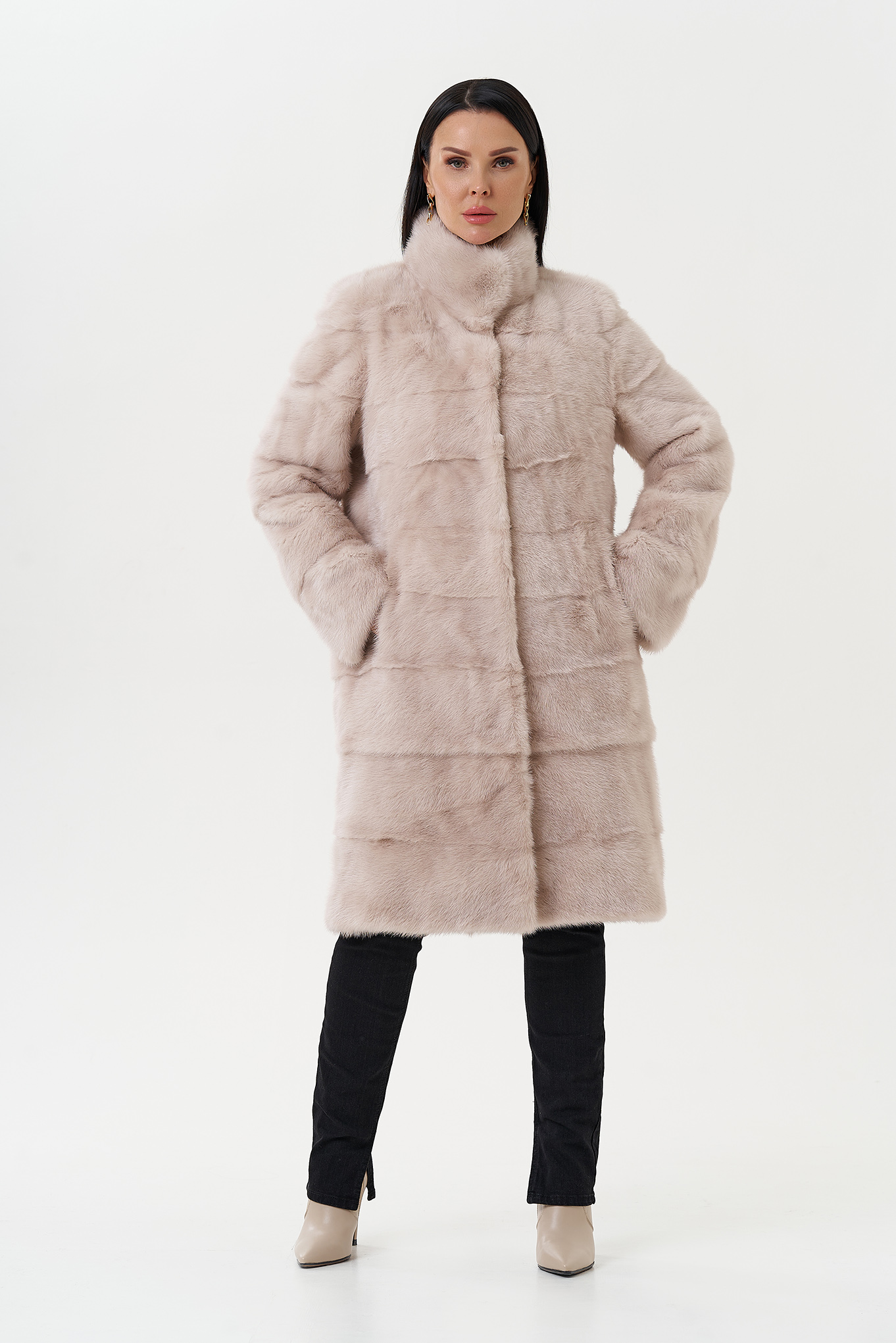 Роскошная шуба из норки в поперечном раскладе