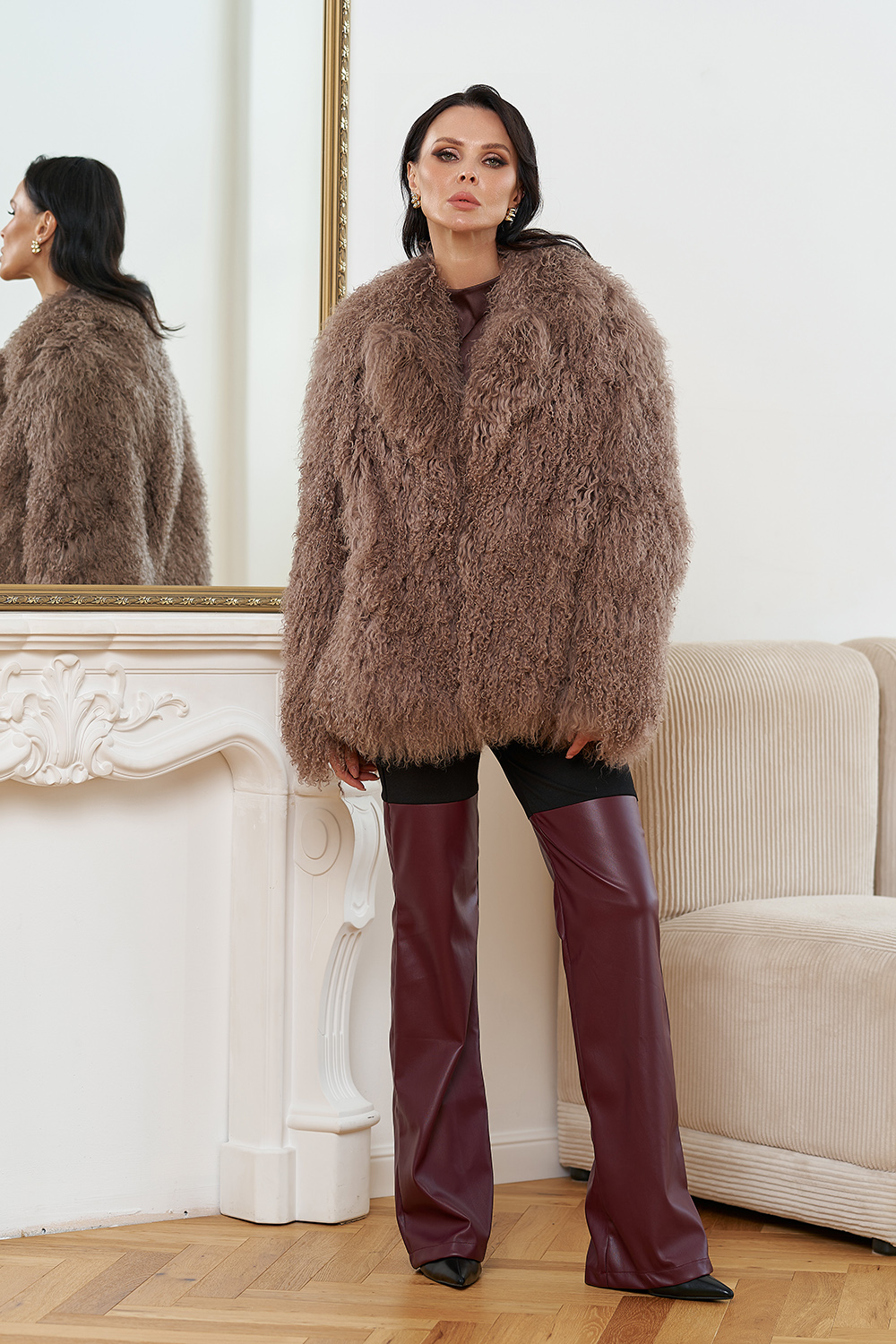 Женская шуба из меха ламы